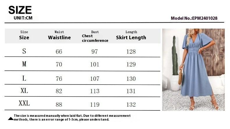 Upgrade your Summer Look with this Elegant Commuter-Style Maxi Dress. Crafted from soft polyester, it offers a Comfortable Fit with its Elastic Waistband and Feminine Details like Ruffled Short Sleeves and a Pleated long Skirt ā ideal for Both Casual and Work occasions.