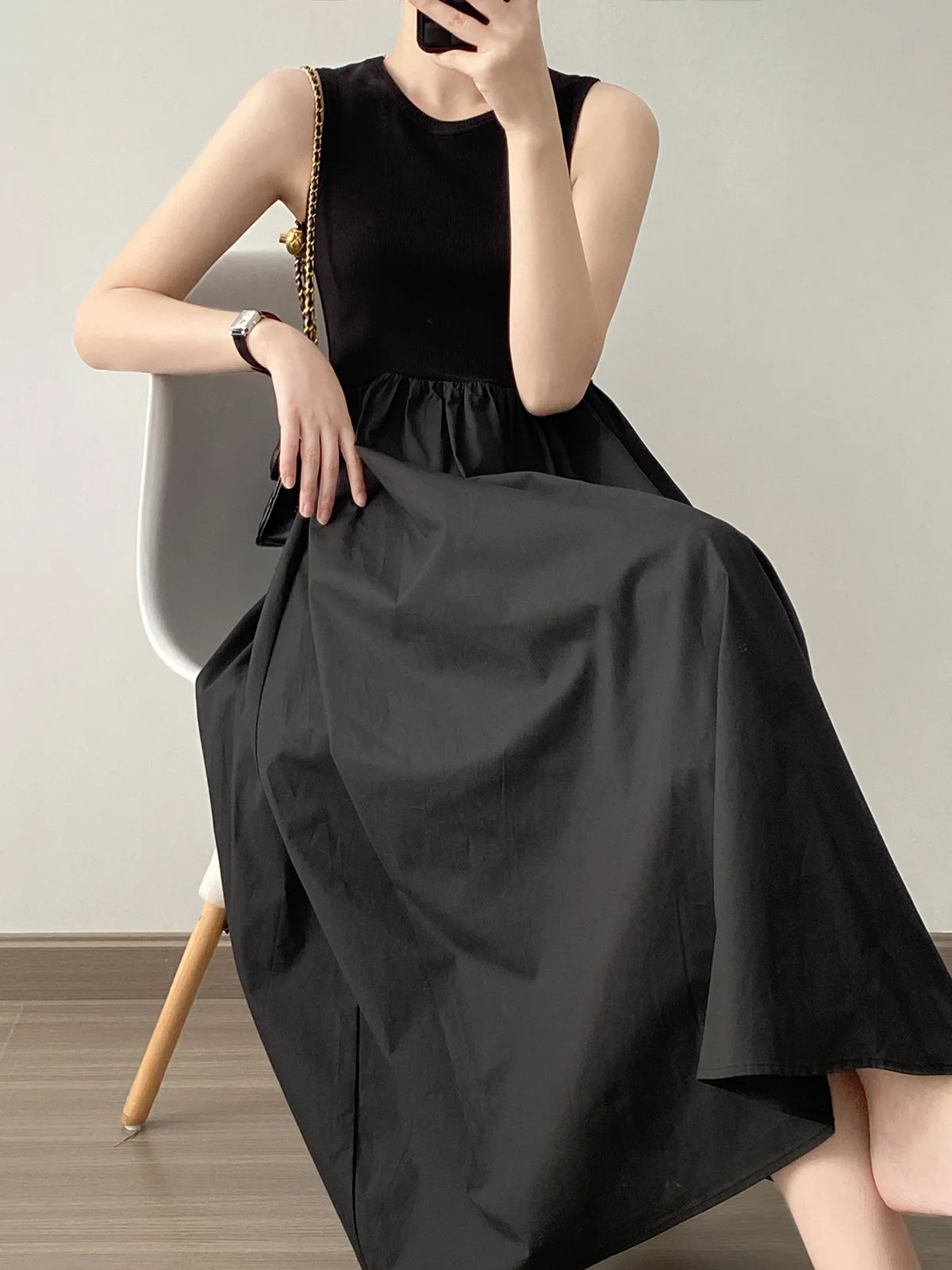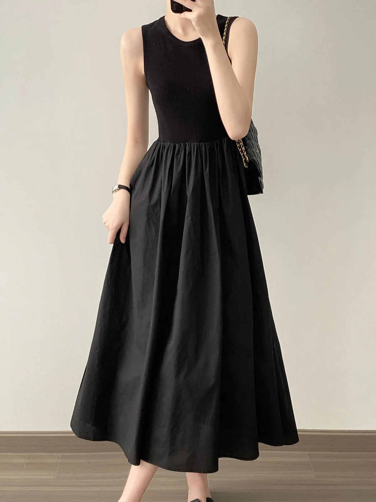 Elegante A-Lijn Damesjurk β Casual Mouwloze Zomerjurk in Roze, Zwart & Beige